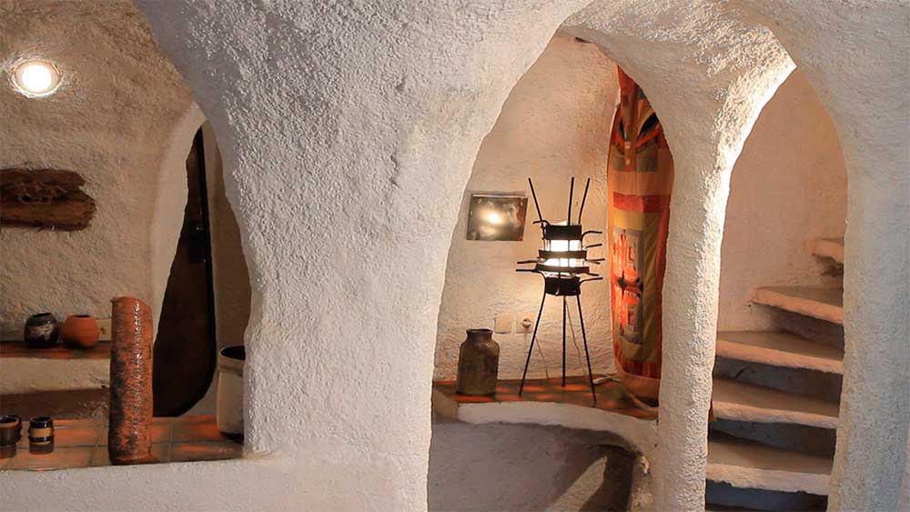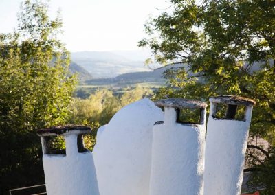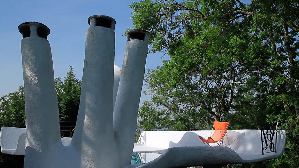 « Sur la ruine existante on démarrait des bulles. On faisait toutes sortes de voûtes qui allaient supporter une terrasse supérieure, au premier étage. Ce sont des croquis qu’on faisait tous les soirs. C’était improvisé, justement, le maçon la eu l’idée de faire trois cheminées en éventail, ce qu’on n’avait pas prévu dans nos desseins. »